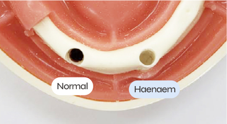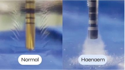 En D3 block, la fresa estándar expulsa viruta hacia la cara opuesta; Haenaem compacta las partículas hacia el frente produciendo densificación. En líquido, se observa succión apical.